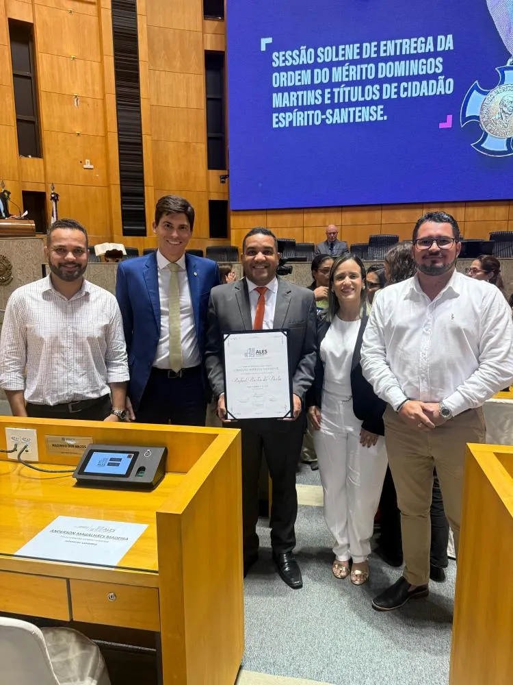 Em uma cerimônia marcada pela emoção e pelo reconhecimento público, Rafael Rocha de Paula foi agraciado com o título de Cidadão Capixaba na noite de 9 de julho, na Assembleia Legislativa do Espírito Santo (Ales). A honraria foi concedida por iniciativa do deputado estadual Mazinho dos Anjos, que destacou a trajetória de Rafael como exemplo de dedicação, compromisso social e contribuição ao desenvolvimento capixaba.