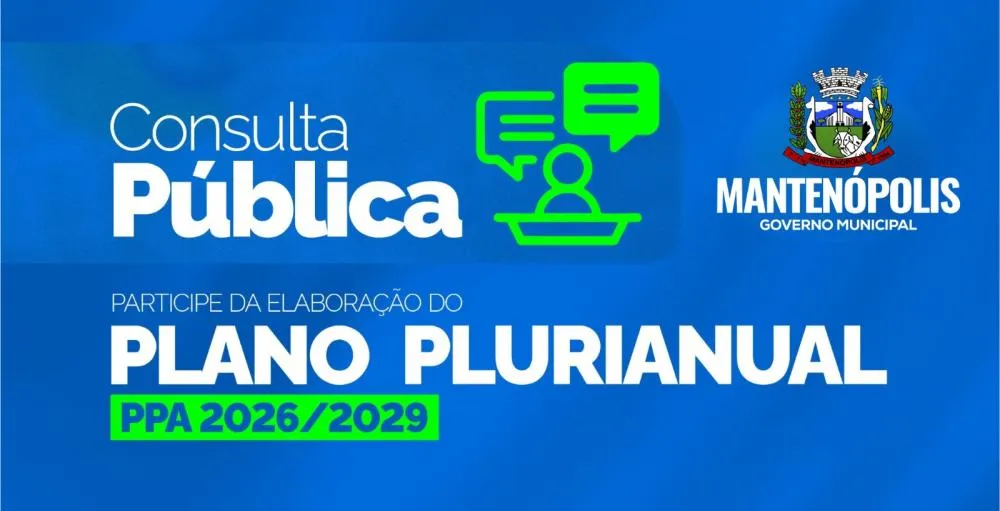 A Prefeitura de Mantenópolis convida toda a população a participar ativamente da Consulta Pública para a elaboração do Plano Plurianual (PPA) 2026–2029. O PPA é o principal instrumento de planejamento do governo, responsável por definir as prioridades, metas e diretrizes que orientarão as políticas públicas e os investimentos do município pelos próximos quatro anos.